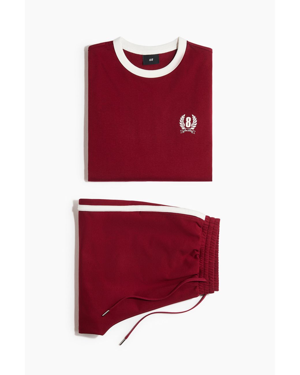 Loungewear-Set aus Baumwolljersey mit T-Shirt und Shorts. T-Shirt mit Printmotiv, Rundausschnitt und geradem Saum. Shorts mit elastischem Kordelzugbund und seitlichen Leistentaschen. Farbe: rot