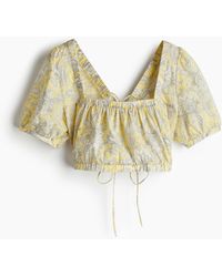 Weiter zu H&MOversized Bluse aus luftiger Baumwolle mit einer Vorderpasse aus Spitze und Raffungen vorn und hinten. Rundausschnitt mit Keyhole-Öffnung und verdecktem Knopf im Nacken. Butterfly-Ärmel mit Spitzenborte an den Abschlüssen. Farbe: natur