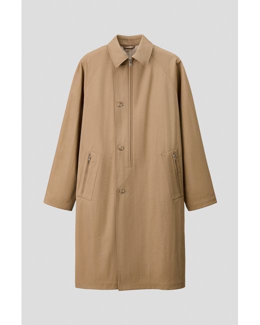 Einreihiger Car Coat aus Twill, hergestellt aus einer Baumwolle-/Nylonmischung. Modell mit Kragen und einem verdeckten Reißverschluss, der sich für zusätzliche Funktionalität bis zur Hälfte öffnen lässt. Seitliche Reißverschlusstaschen und im Rücken ein Gehschlitz. Ungefüttert. Farbe: natur