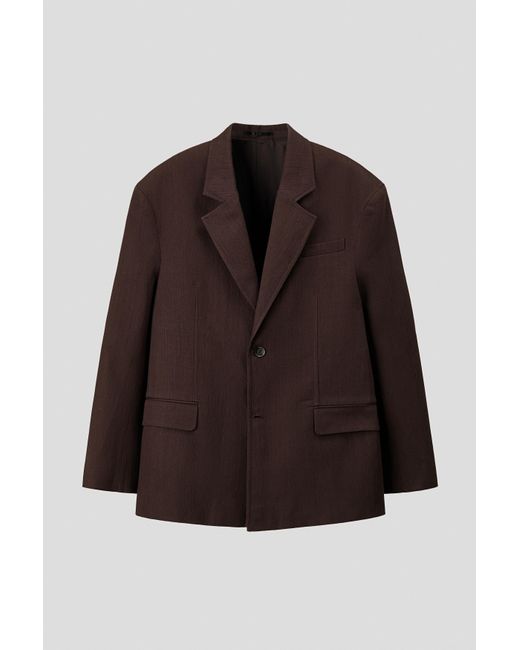 Einreihiges Leinensakko mit fallendem Revers, Zierknopfloch, Brusttasche, Vordertaschen mit Patte und zwei Innentaschen. Zwei Knöpfe vorn, geschlitzte Ärmelabschlüsse und im Rücken ein Gehschlitz. Gefüttert. Entspannte Passform mit einer großzügigen, jedoch nicht oversized Silhouette. Leinen ist ein atmungsaktives Material, das sowohl gebügelt als auch geknittert schön aussieht und mit der Zeit an Weichheit gewinnt. Farbe: braun