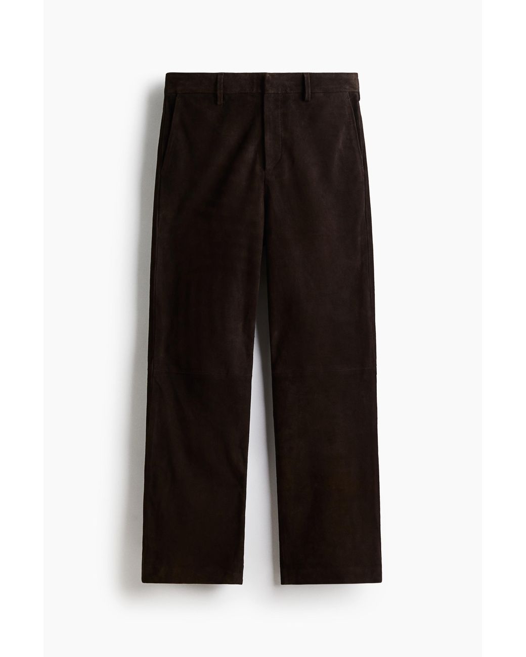 Hose aus weichem Veloursleder mit Zip Fly sowie verdecktem Knopf und Hakenverschluss. Seitentaschen, Leistentaschen hinten und gerade Beine. Entspannte Passform mit einer großzügigen, jedoch nicht oversized Silhouette.