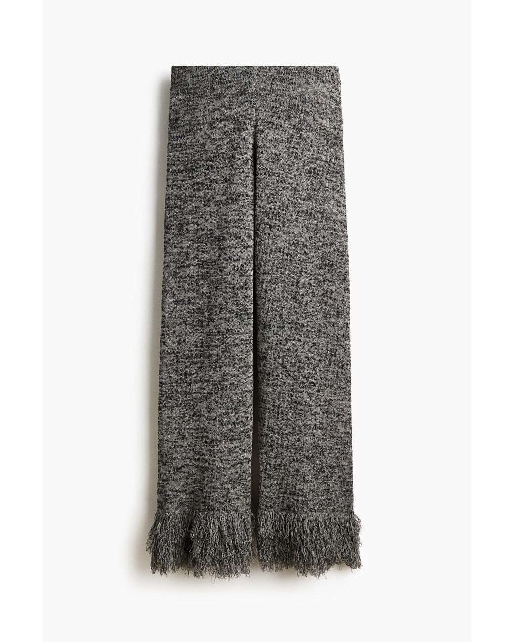 Hose aus weichem Strick. Hoher Bund mit verdecktem Gummizug und gerades Bein mit breitem Fransenbesatz am Abschluss. Farbe: grau