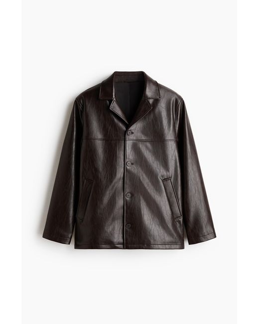 Jacke aus einem beschichteten Material mit fallendem Revers, Knopfleiste, seitlichen Leistentaschen und einer Leistentasche innen. Sichtbare Nähte an Vorder- und Rückenteil. Gefüttert. Farbe: schwarz