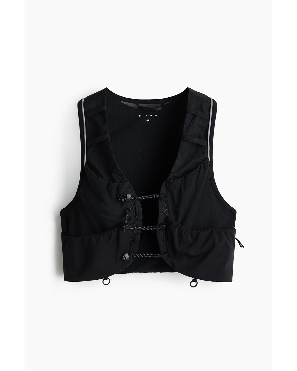 Leichte, offene Laufweste aus atmungsaktivem Jersey mit einem Rückenteil aus strapazierfähigem Ripstop. Verstellbare, elastische Kordeln mit Kordelstopper vorn. Brusttaschen für Trinkflaschen mit Gummizug zum sicheren Fixieren und kleine Vordertaschen mit elastischem Kordelzug und seitlichem Zipper. Elastisches Band vorn, eine Zippertasche fürs Handy, kleine Belüftungslöcher im oberen Rückenbereich und eine Reißverschlusstasche hinten. Reflektoren und eine elastische Kordelschlaufe am Saum zum Befestigen der Startnummer. Futter aus Mesh. Farbe: schwarz