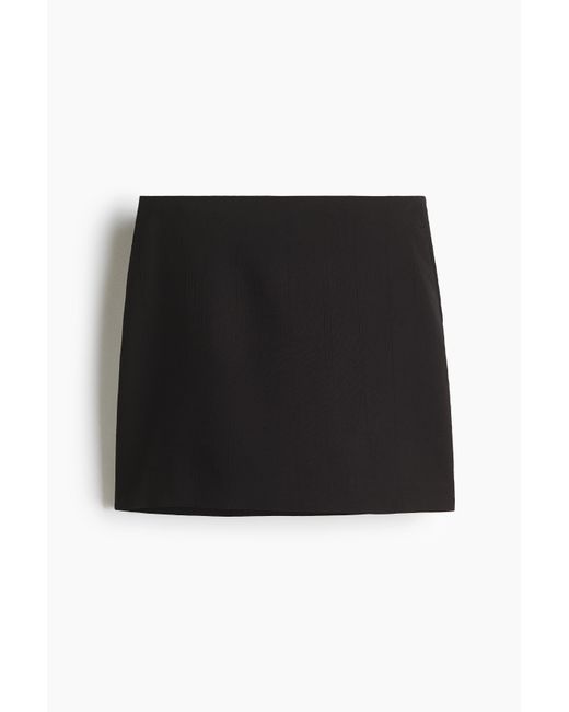 Figurbetonter Minirock aus Webstoff mit dezenten Seitentaschen und verdecktem Reißverschluss und Häkchenverschluss an der Seite. Gefüttert. Farbe: schwarz