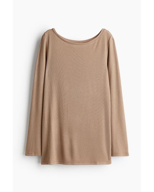 Etwas längerer, figurbetonter Pullover aus Rippstrick mit U-Boot-Ausschnitt und extralangen Ärmeln. Schlitz an den Ärmelabschlüssen und seitlich am Saum. Farbe: natur