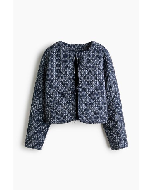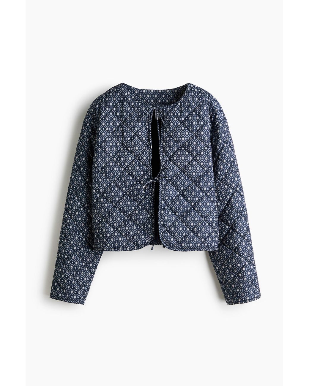 Kurze, leicht wattierte Steppjacke aus Jersey. Loose Fit. Mit Rundausschnitt und drei Paar schmalen Bindebändern vorn. Berschnittene Schultern und lange, leicht schmal zulaufende Ärmel. Gefüttert. Farbe: blau