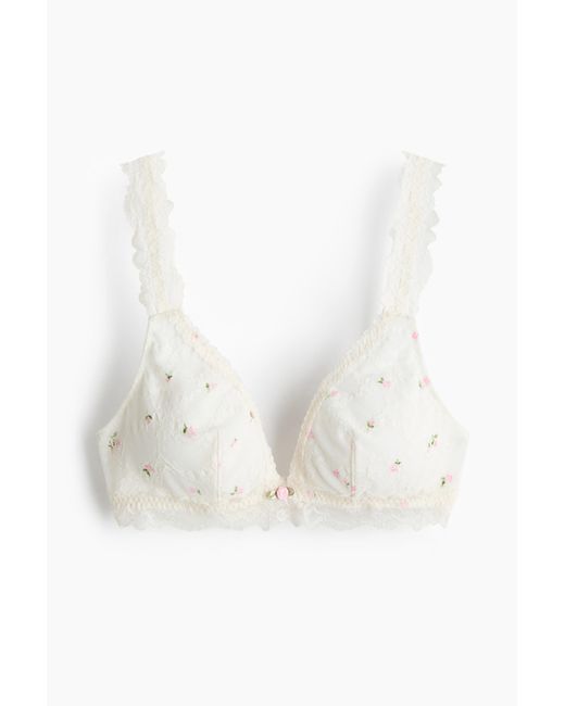 Soft-BH aus Spitze. Modell mit verstellbaren Trägern und gefütterten Cups mit herausnehmbaren Einlagen, die dem Busen Form und guten Halt geben. Häkchenverschluss im Rücken. Farbe: weiß