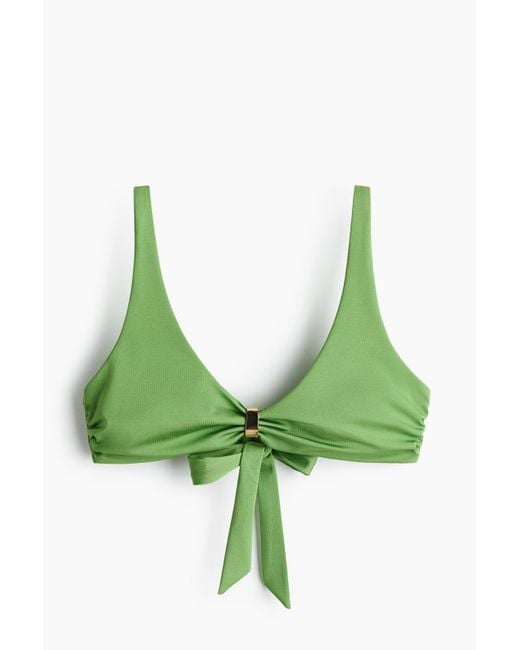 Bügelloses, gefüttertes Bikinitop mit verstellbaren Trägern und herausnehmbaren Einlagen in den Cups, die dem Busen Form und guten Halt geben. Seitliche Raffungen und vorn ein Metalldetail. Bindebänder im Rücken. Farbe: grün