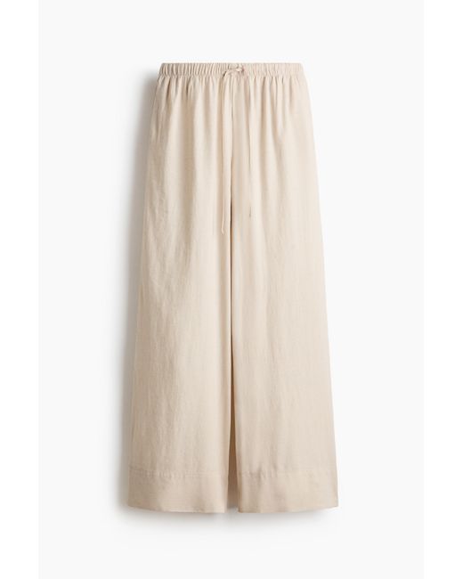 Locker geschnittene Hose aus einem luftigen Leinen-Viskose-Mischgewebe. Modell mit elastischem Kordelzugbund, dezenten Seitentaschen und weitem Bein. Farbe: natur