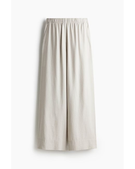 Hose aus einem luftigen Leinen-/Viskosestoff mit hohem, elastischem Bund und Fake Fly. Schräge Seitentaschen, angedeutete Leistentaschen hinten und weite Beine. Farbe: weiß