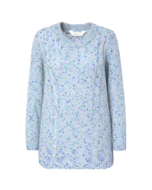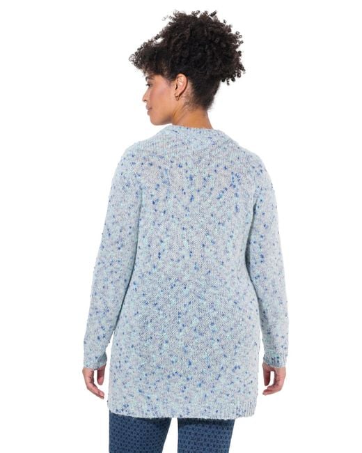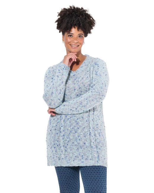 Material: Strick; Ausschnitt: Rundhals-Ausschnitt; Passform: Lockere Passform; Ärmellänge: Langarm; Länge: Langer Schnitt Farbe: blau