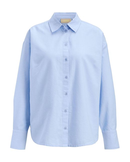Blusen-Stil: Klassische Bluse; Design: 2-Knopf-Manschetten, Knopfleiste, Rückenfalte, Runder Saum, Überschnittene Schulter; Verschlussart: Knopfverschluss; Material: Baumwolle; Muster: Unifarben; Hemdkragen: Kentkragen; Details: Falten; Extras: Ton-in-Ton-Nähte, Weicher Griff; Passform: Lockere Passform; Ärmellänge: Langarm; Länge: Normale Länge Farbe: blau