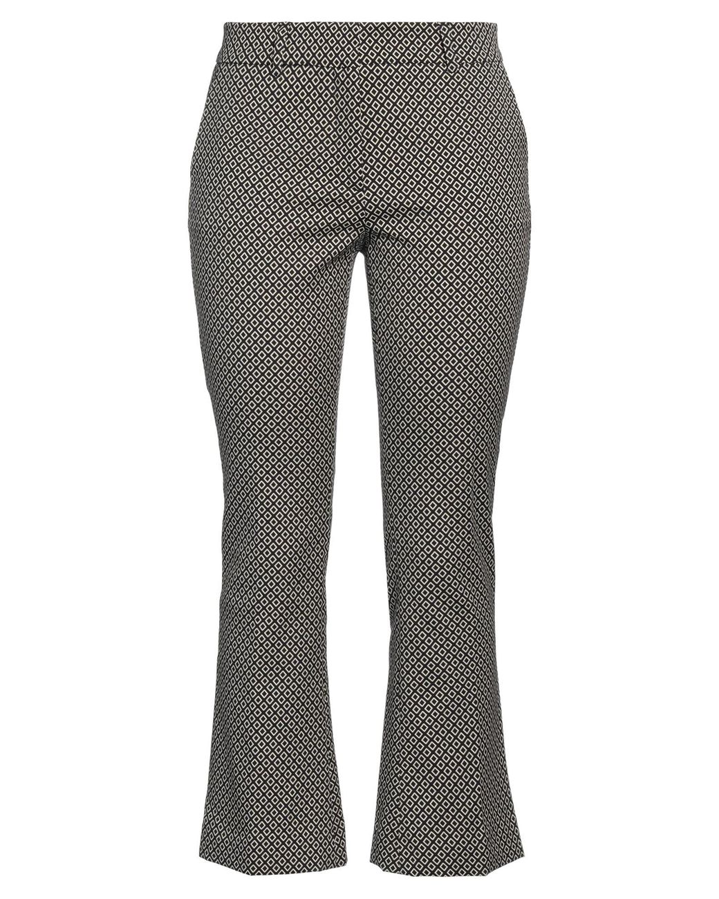 MESSAGERIE. Tuch, Jacquard, ohne Applikationen, geometrisches Muster, normale Taille, Gürtelschlaufen, Regular fit, Reißverschluss, Verschluss mit Häkchen, viele Taschen, Stretch, Chemische Reinigung, nicht Bleichen, Trockner ungeeignet, Cropped, Bootcut-Hosen, Die Bekleidung dieses Brands fällt klein aus. 60% Baumwolle, 37% Polyester, 3% Elastan.