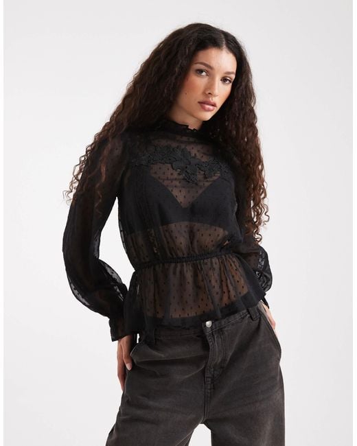 Damen – victoriana – bestickte bluse aus chiffon in schwarz
