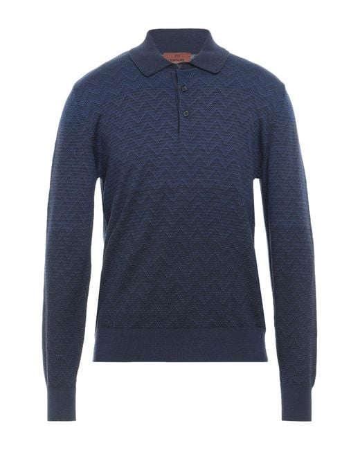 MISSONI. Handgestrickt, Leichter Strick, ohne Applikationen, Charakteristischer Print, Kragen mit Knöpfen, lange Ärmel, Handwäsche oder Trockenreinigung, nicht Bleichen, Trockner ungeeignet, Die Bekleidung dieses Brands fällt groß aus. 50% Baumwolle, 50% Wolle. Farbe: blau