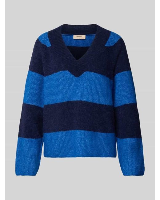 Damen Strickpullover aus Woll-Mix mit Streifenmuster Modell 'Taci' in blau