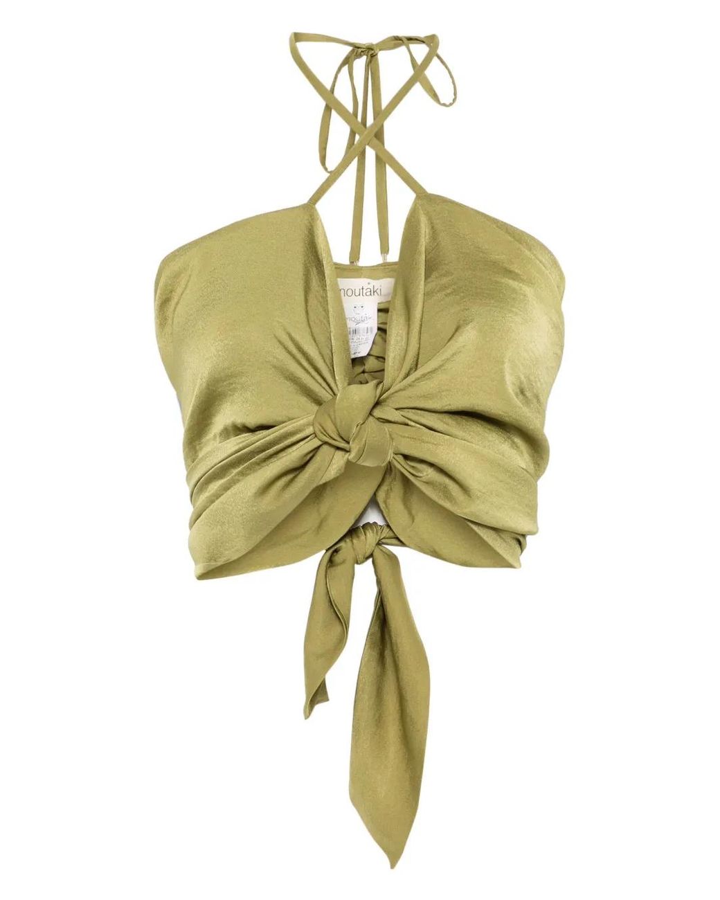 Avocado Green Neckholder hinten Schleifenverschluss hinten Cropped-Design Size: Einheitsgröße. Gender: Female. Material:Polyester. Farbe: mettallic