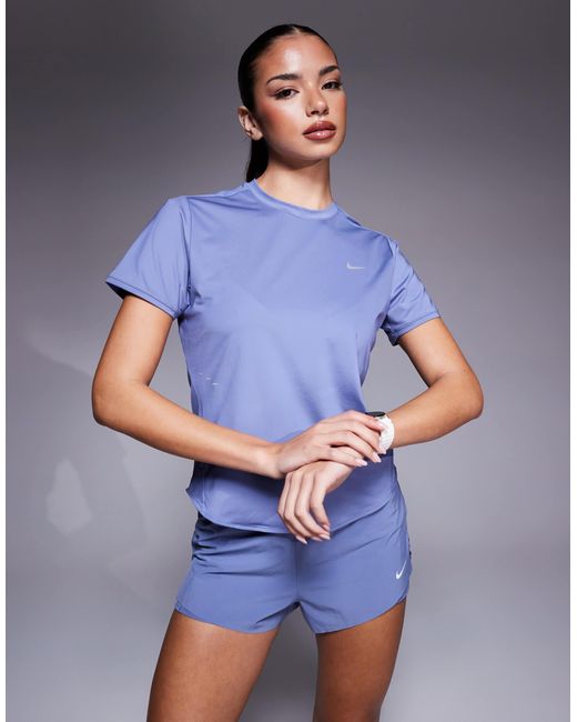 Oberteile von Nike Running Rundhalsausschnitt Kurzärmlig Mit Nike-Logo Netzstoffeinsatz zur besseren Durchlüftung Normale Passform. Farbe: blau