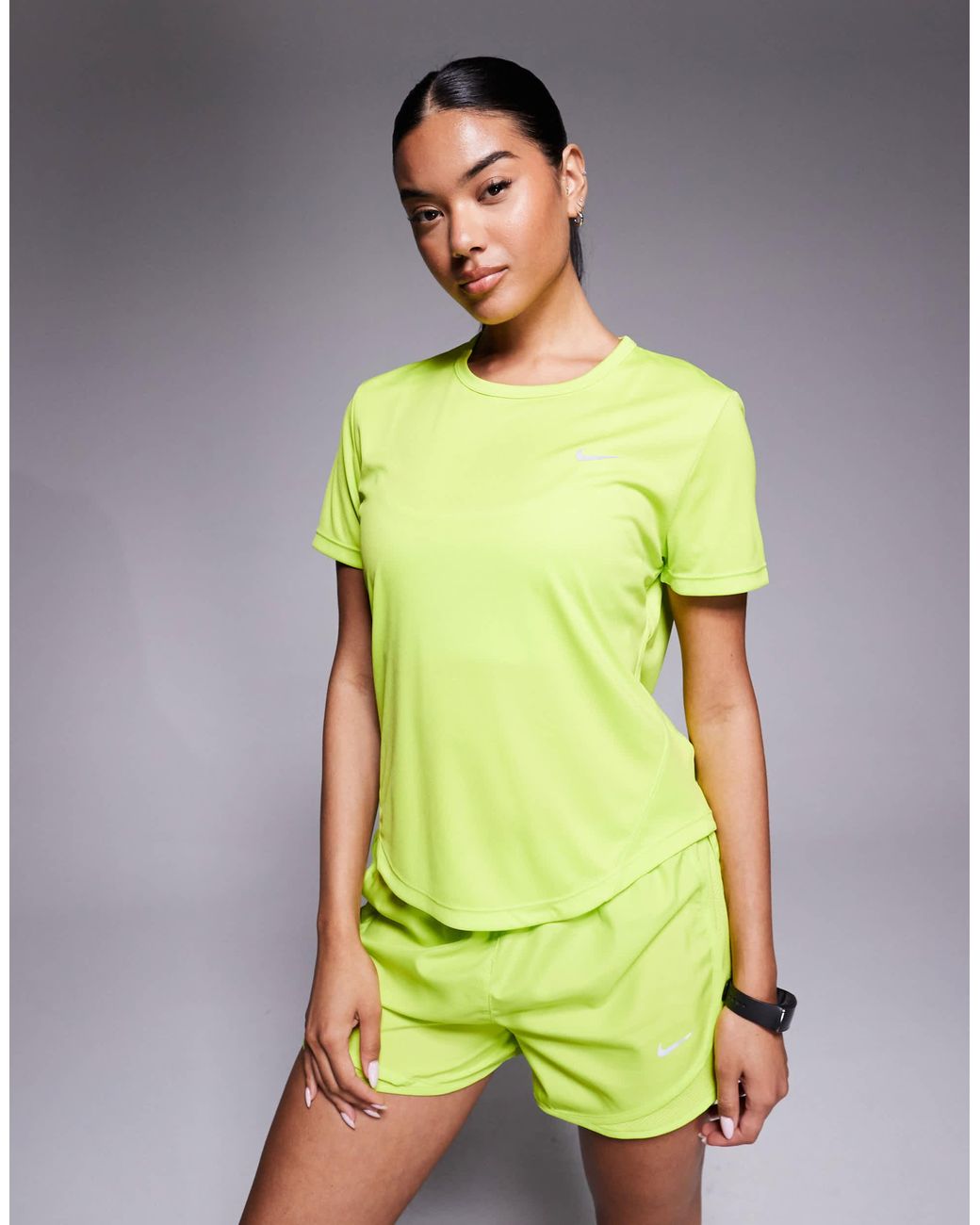 Oberteile von Nike Running Schlichtes Design Rundhalsausschnitt Kurzärmlig Normale Passform. Farbe: grün