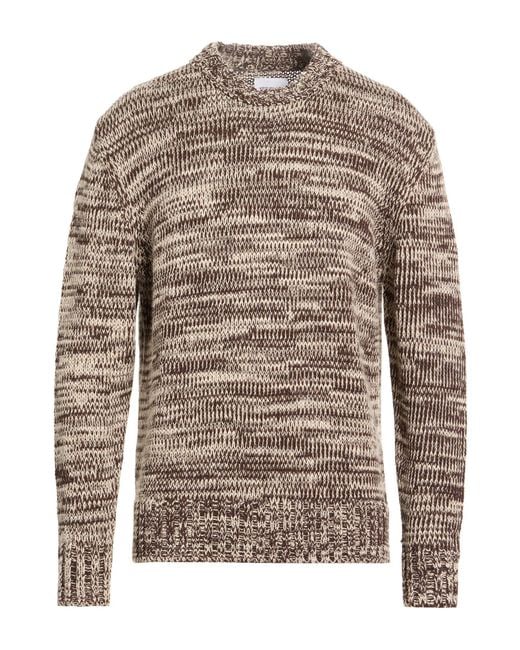 NORSE PROJECTS. Rippenmuster, Mittelschwerer Strick, ohne Applikationen, zweifarbiger Print, Rundhalsausschnitt, lange Ärmel, Chemische Reinigung, nicht Bleichen, Trockner ungeeignet. 28% Recycelte Baumwolle, 28% Recyceltes Polyester, 24% Leinen, 20% Polyester. Farbe: grau