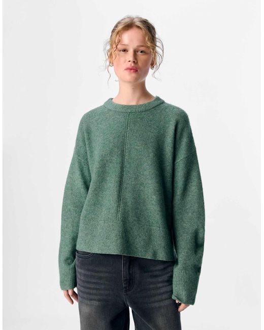 Pullover & Strickjacken von Object Rundhalsausschnitt Überschnittene Schultern Ziernähte Gerippte Abschlüsse Lockere Passform. Farbe: grün