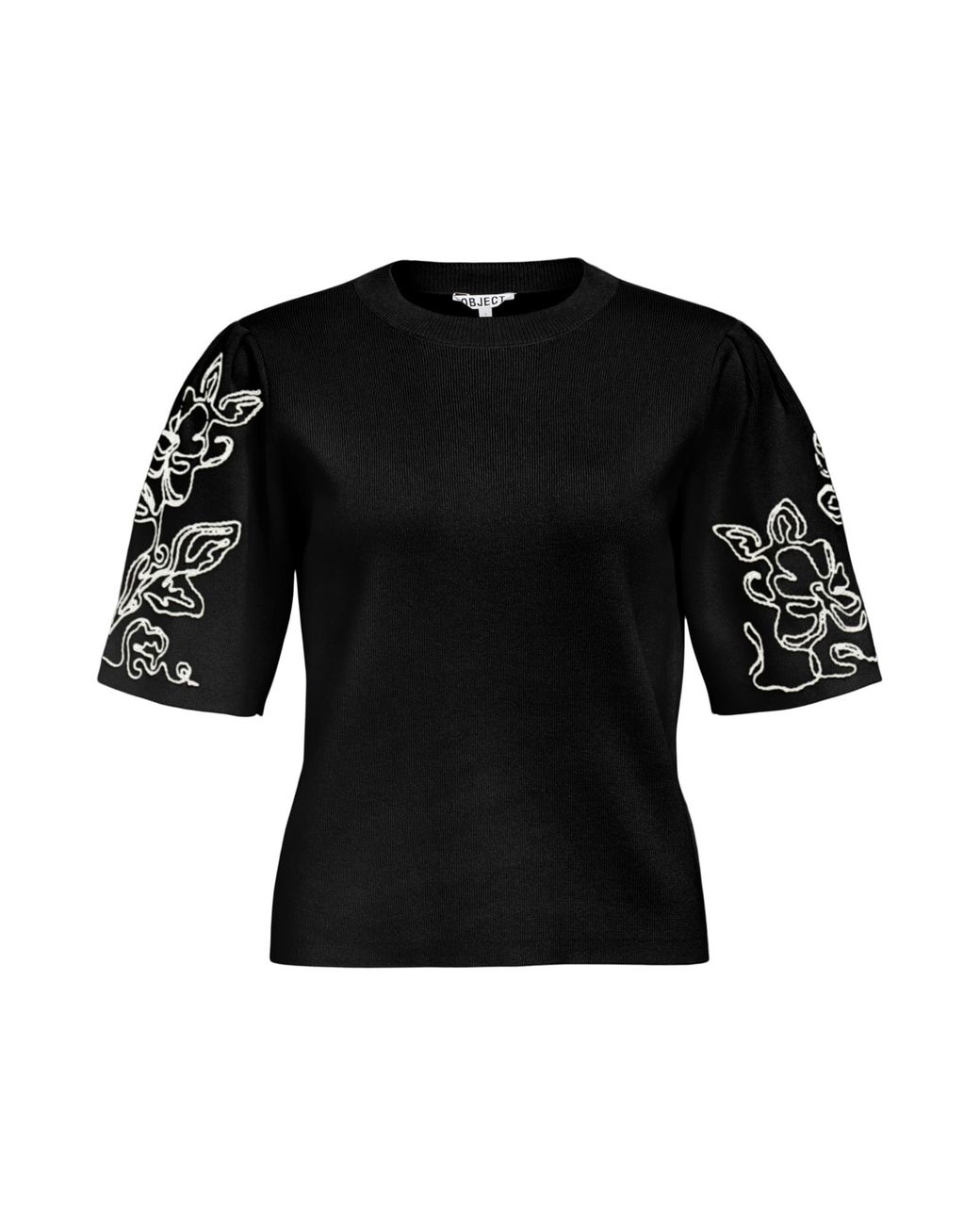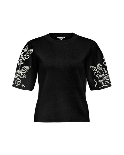 Design: Bündchen-/Rippstrick-Kragen, Gerader Saum; Material: Strick; Ausschnitt: Rundhals-Ausschnitt; Details: Stickerei, Falten; Extras: Applikationen; Passform: Normale Passform; Ärmellänge: Halbarm; Länge: Normale Länge Farbe: schwarz