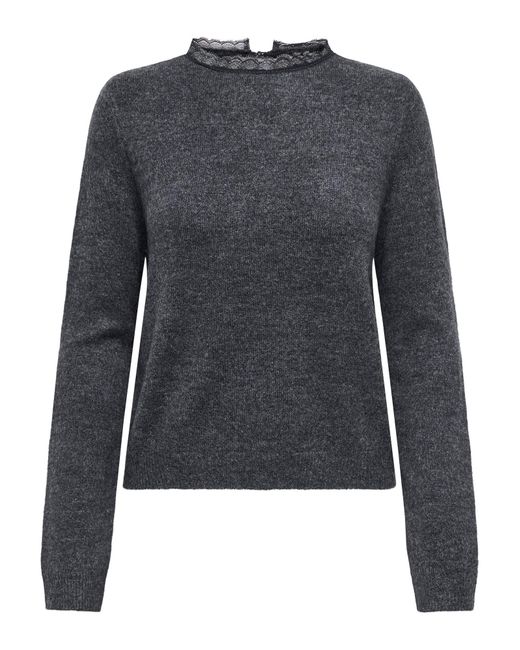 Design: Keyholeverschluss; Verschlussart: Knopfverschluss; Material: Strick; Ausschnitt: Stehkragen; Muster: Melange; Details: Cut-Outs, Spitze; Extras: Strukturierter Griff; Passform: Normale Passform; Ärmellänge: Langarm; Länge: Normale Länge Farbe: grau