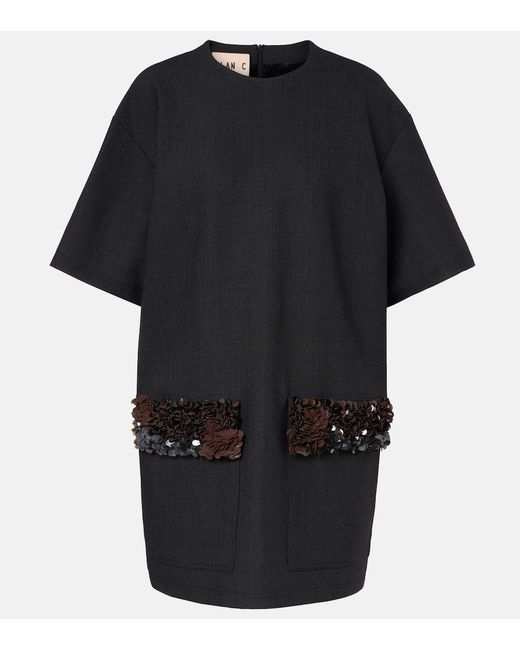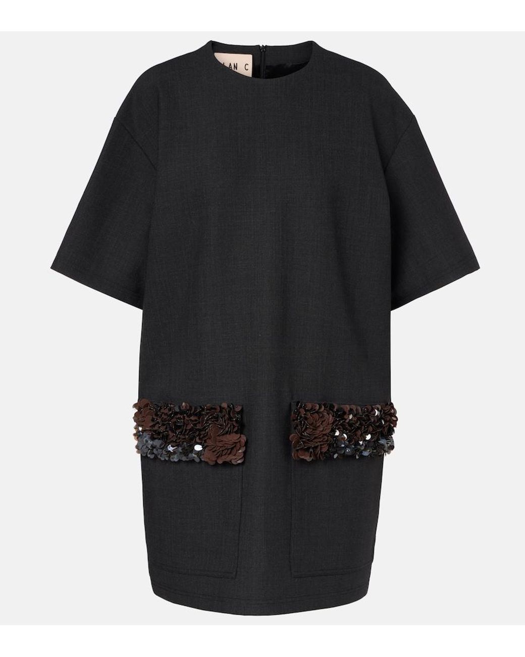 Damen Minikleid Aus Einem Wollgemisch Mit Pailletten in schwarz