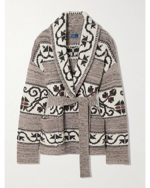 - Cardigan Aus Jacquard-Strick Aus Einer Wollmischung Mit Bindegürtel