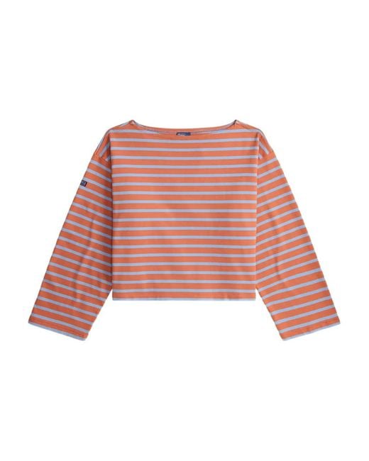 - Gestreifter Jersey mit U-Boot-Ausschnitt