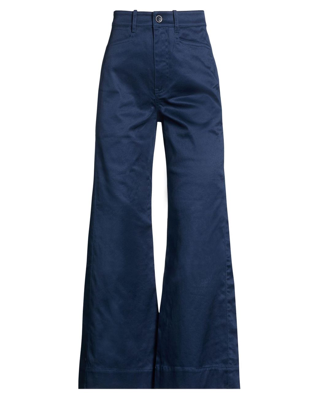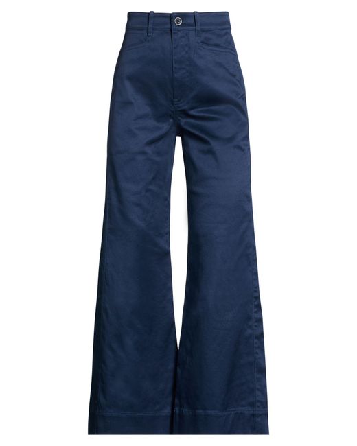 PROENZA SCHOULER. Hose mit weitem Bein, Twill, Mit Stretch-Anteil, einfarbig, Brand Logo, hohe Taille, Regular fit, Reißverschluss, Knopfverschluss, Taschen, Maschinenwäsche oder Reinigung, nicht Bleichen, Trockner ungeeignet, Die Bekleidung dieses Brands fällt groß aus. 97% Baumwolle, 3% Elastan. Farbe: blau
