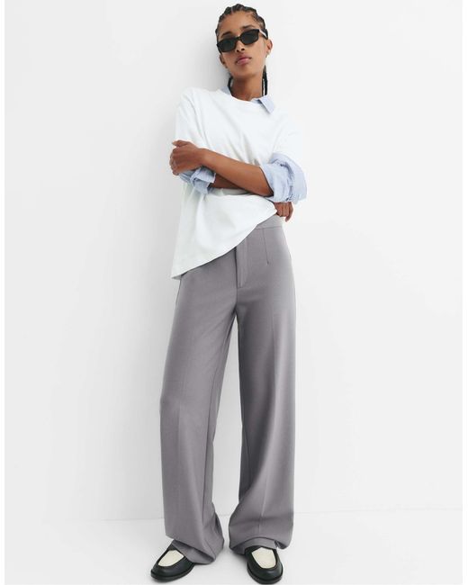 Hosen & Leggings von Pull& Bear Schlichtes Design Mit hohem Bund verdeckter Hosenschlitz Weit geschnitten. Farbe: weiß