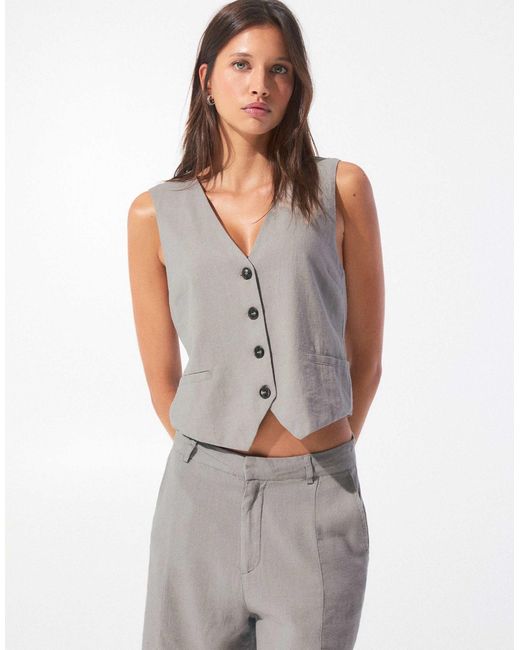 Oberteile von Pull&Bear V-Ausschnitt Knopfleiste Ziertaschen Passende Rückseite mit verstellbarer Schnalle Normale Passform. Farbe: grau