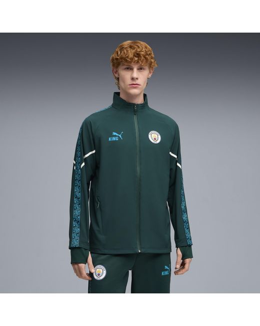 Spüre die Energie des Spieltag in der Manchester City KING Ultimate Anthem Trainingsjacke. Schmal geschnitten, leicht und für Bewegung gemacht – perfekt für die Momente vor dem Spiel, in denen Konzentration und Stolz zusammenkommen. Auffallende Grafiken und Club-Details zeigen, für wen dein Herz schlägt – auf dem Platz oder auf der Tribüne. FEATURES + VORTEILE FEUCHTIGKEITSREGULIERUNG: Technische dryCELL Gewebe leiten Feuchtigkeit von der Haut ab – für ein trockenes und komfortables Tragegefühl Hergestellt aus mindestens 90 % recycelten Materialien. Passform: Slim Hauptmaterial: Doppellagiges Material Lange Ärmel Verschluss: Durchgehender Reißverschluss Offizielles Team Branding Farbe: grün