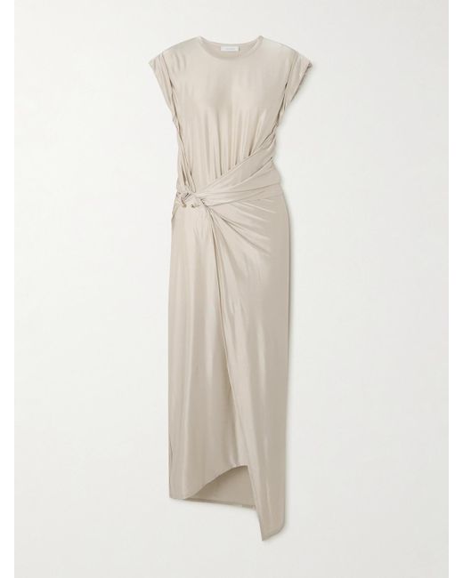 - Asymmetrisches Midikleid Aus Glänzendem Jersey Mit Verzierung