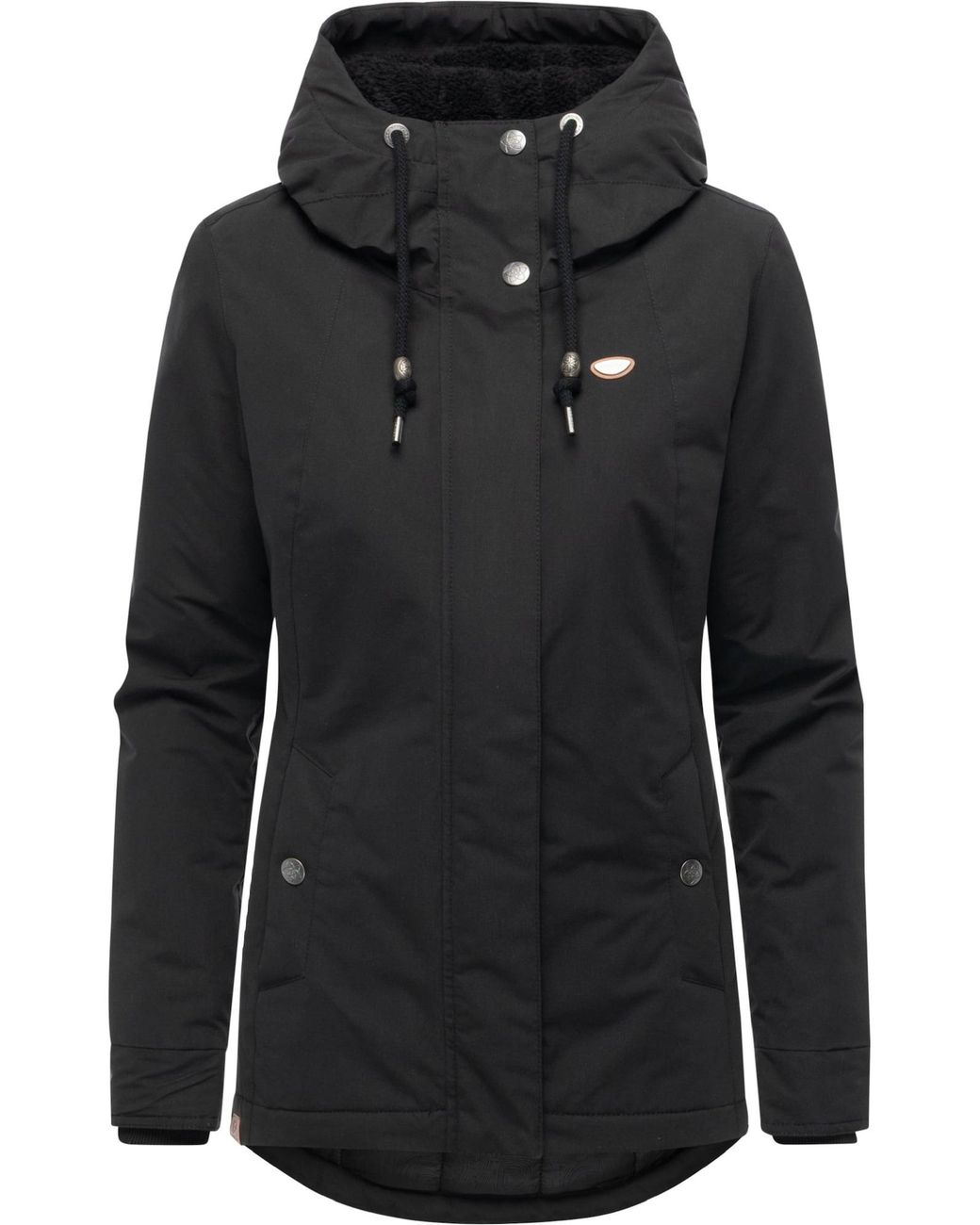 Design: Elastischer Bund/Saum, Kapuze mit Stehkragen, Kapuze mit Tunnelzug, Taillierter Schnitt, Verdeckter Reißverschluss, Seitliche Eingrifftaschen; Verschlussart: Reißverschluss; Fütterung: Warm gefüttert; Muster: Unifarben; Extras: Label Plate, Ton-in-Ton-Nähte, Wasserdicht; Passform: Schmale Passform Farbe: schwarz