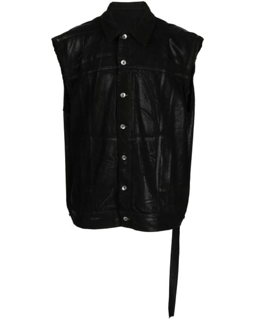 Jet Black, Baumwolle, Denim, wachsbeschichtet, ausgefranster Saum, klassischer Kragen, Knopfverschluss vorne, ärmellos, gerader Saum. This item may not be on sale in France, UK, Italy, Belgium and Switzerland.