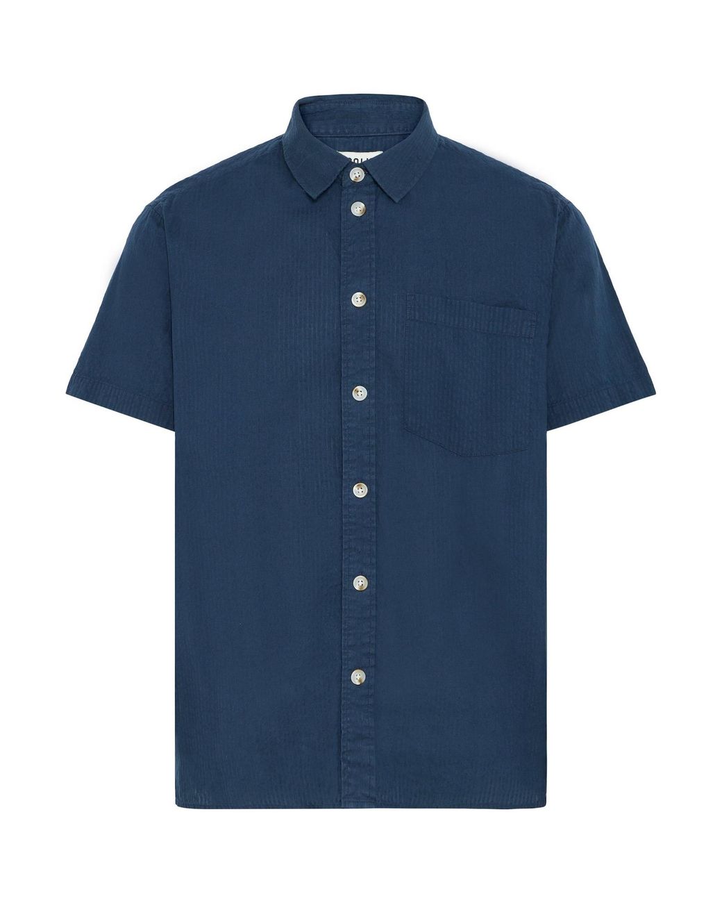 Design: Brusttasche; Verschlussart: Knopfverschluss; Material: Baumwolle; Muster: Unifarben; Hemdkragen: Kentkragen; Extras: Ton-in-Ton-Nähte; Schnitt: Regular Fit; Ärmellänge: Viertelarm Farbe: blau