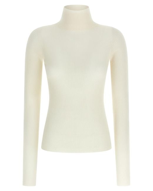 Rollkragenpullover 'Niagara' aus geripptem Garn aus reiner Schurwolle, nahtlos gestrickt, hoher Halsausschnitt, lange Ärmel mit Bündchen. SPORTMAX. Rollkragenpullover 'Niagara'. Größengetreue Passform. Farbe: weiß