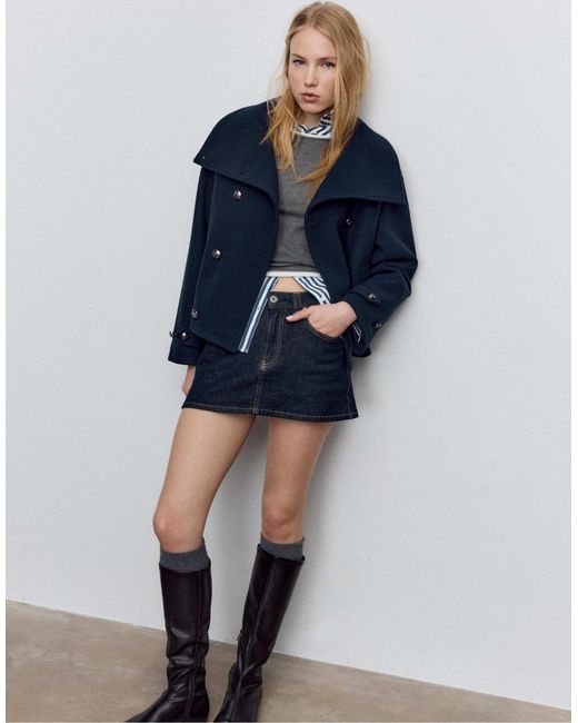 Damen – hochgeschlossene, weiche jacke in blau