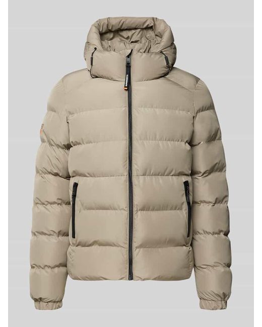 Herren Steppjacke mit Kapuze und seitlichen Reißverschlusstaschen in natur