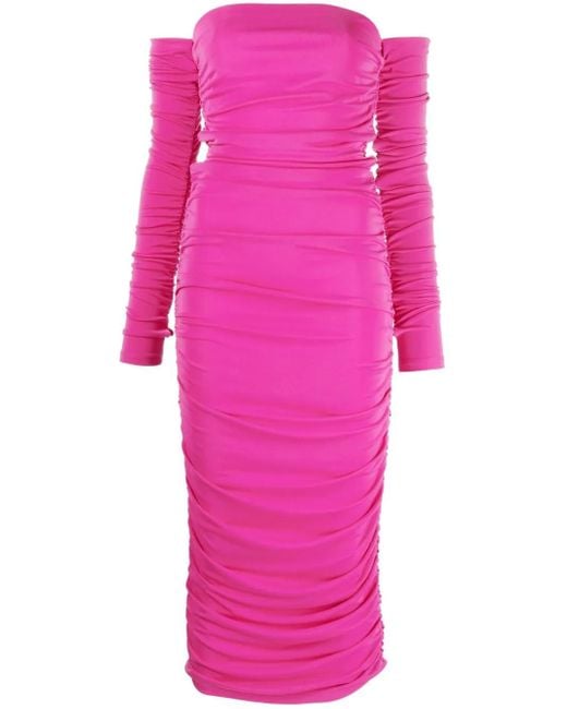 Damen Schulterfreies Kleid Mit Raffungen in pink