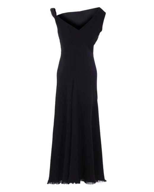 Damen Fransen-Maxikleid Mit Asymmetrischem Ausschnitt in schwarz