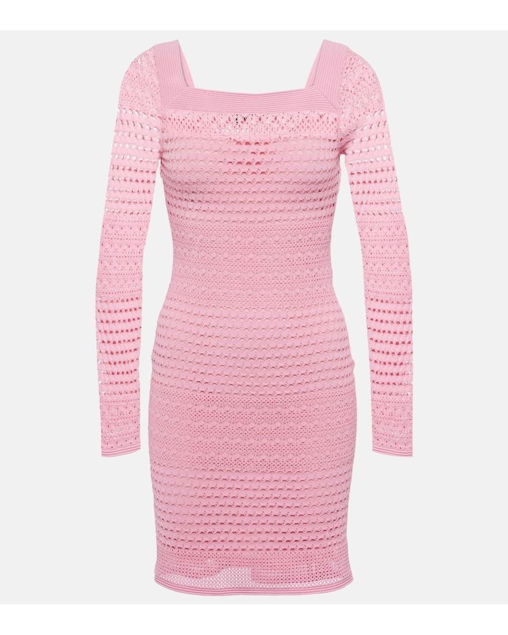 Damen Minikleid Aus Haekelstrick in pink