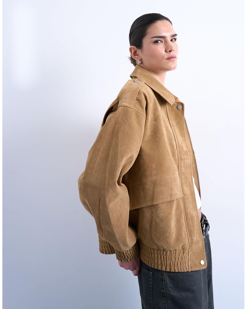 Mäntel & Jacken von Topshop Diese Jacke ist aus strukturiertem Stoff in einem hellbraunen Farbton gefertigt. Sie verfügt über einen gespreizten Kragen, eine verdeckte Knopfleiste und Taschendetails. Das Oversize-Modell zeigt sich mit elastischen Bündchen. Farbe: braun