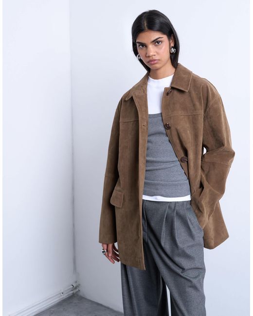 Mäntel & Jacken von Topshop Diese Jacke ist aus einem weichen, strukturierten Material gefertigt, das für ein erstklassiges Tragegefühl sorgt. Dieses Modell mit kastiger Silhouette verfügt über einen breiten Kragen, eine Knopfleiste und zwei aufgesetzte Taschen. Farbe: braun