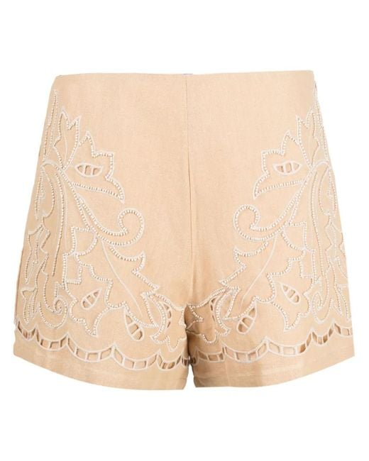 Damen Shorts Mit Lochstickerei in natur