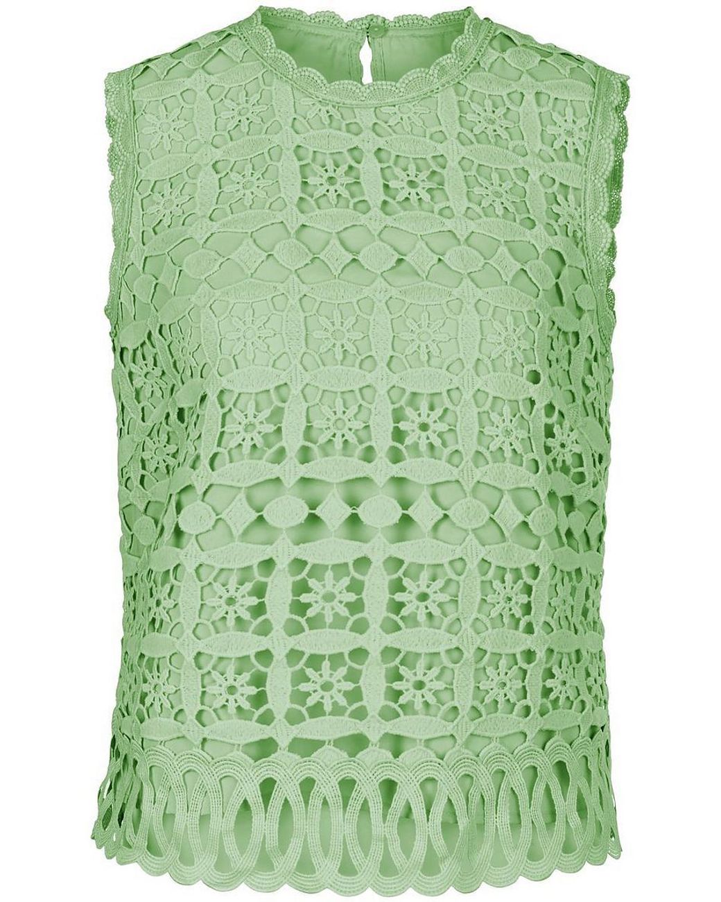 Spitzentop von UTA RAASCH - sieht zur Jeans genauso hinreißend aus wie zur edlen Bermudas. Dieses vielseitige Lieblingsstück sollten Sie sich unbedingt gönnen. Spitze aus 100% Polyester. Futter in 98% Polyester, 2% Elasthan. Länge ca. 56 cm. Dieses Spitzentop ist maschinenwaschbar. Schonwaschgang 30°. Chlorbleiche nicht möglich. Mäßig heiß Bügeln. Keine chemische Reinigung. Trocknen im Tumbler nicht möglich. Farbe: Hellgrün. Erhältlich in den Größen: 36, 38, 40, 42, 44, 46, 48