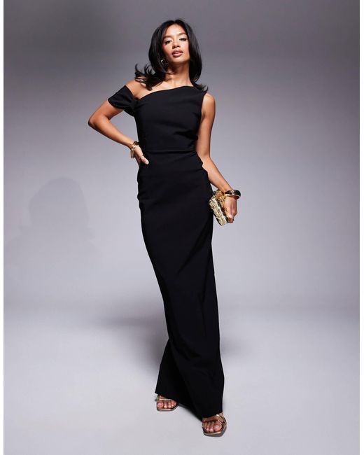 Petite-Kleid von Vesper Petite One-Shoulder-Design kurzärmlig Knotendesign Reißverschluss hinten Schmale Passform. Farbe: blau
